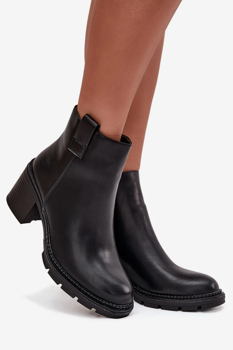 Zateplené dámské kotníkové boty z eko kůže na podpatku černé model 21711683 - Boto
