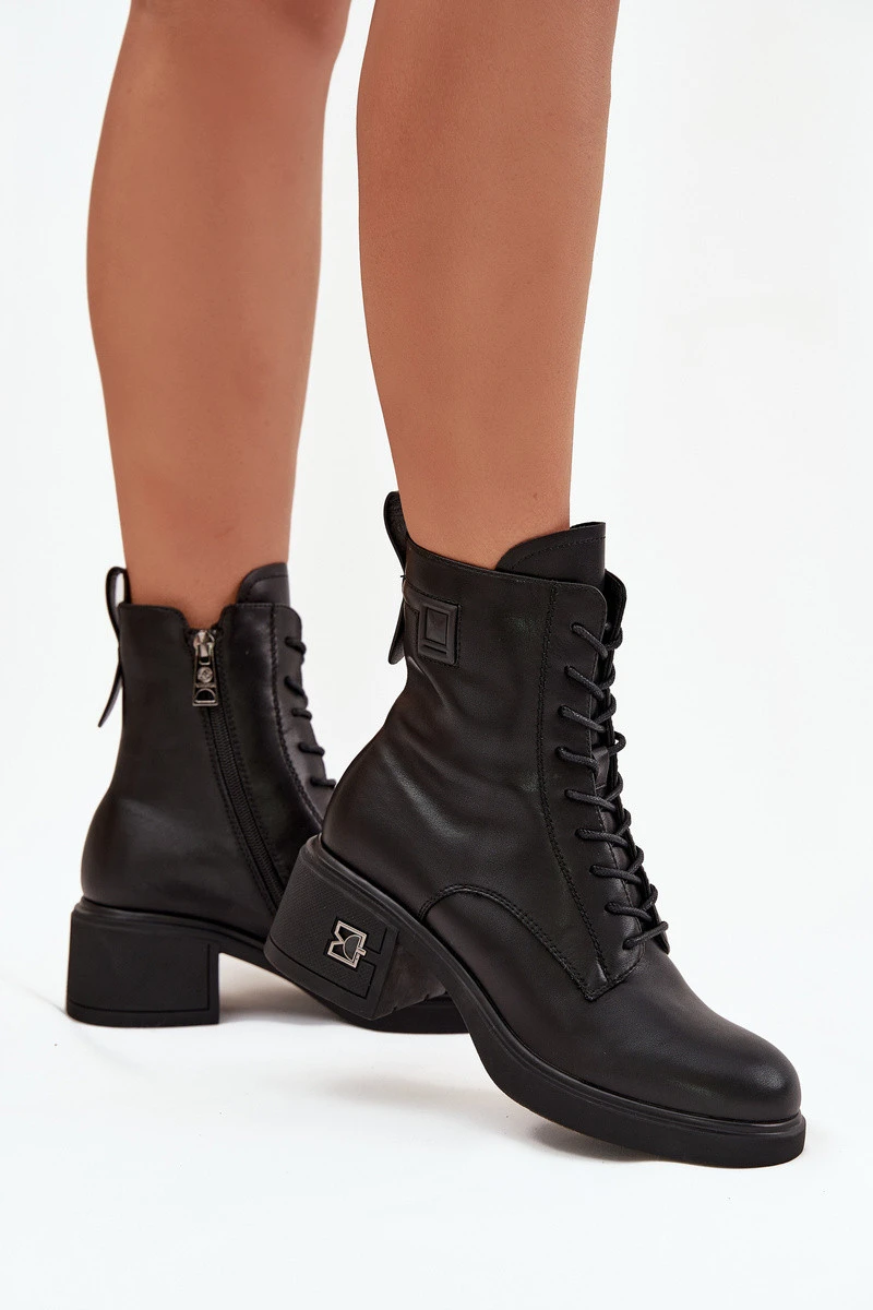 Zateplené dámské kotníkové boty z pravé kůže na klínku model 21713400 Černé - VINCEZA