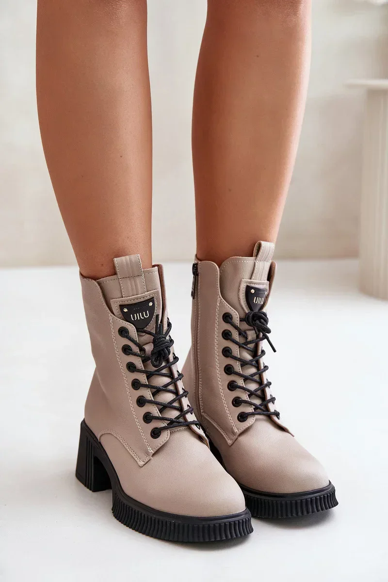 Zateplené Dámské Kotníkové Boty z Přírodní Kůže Vinceza Béžové