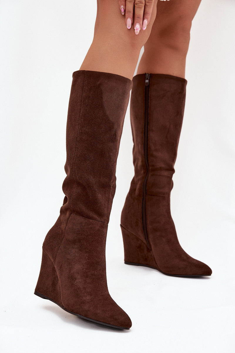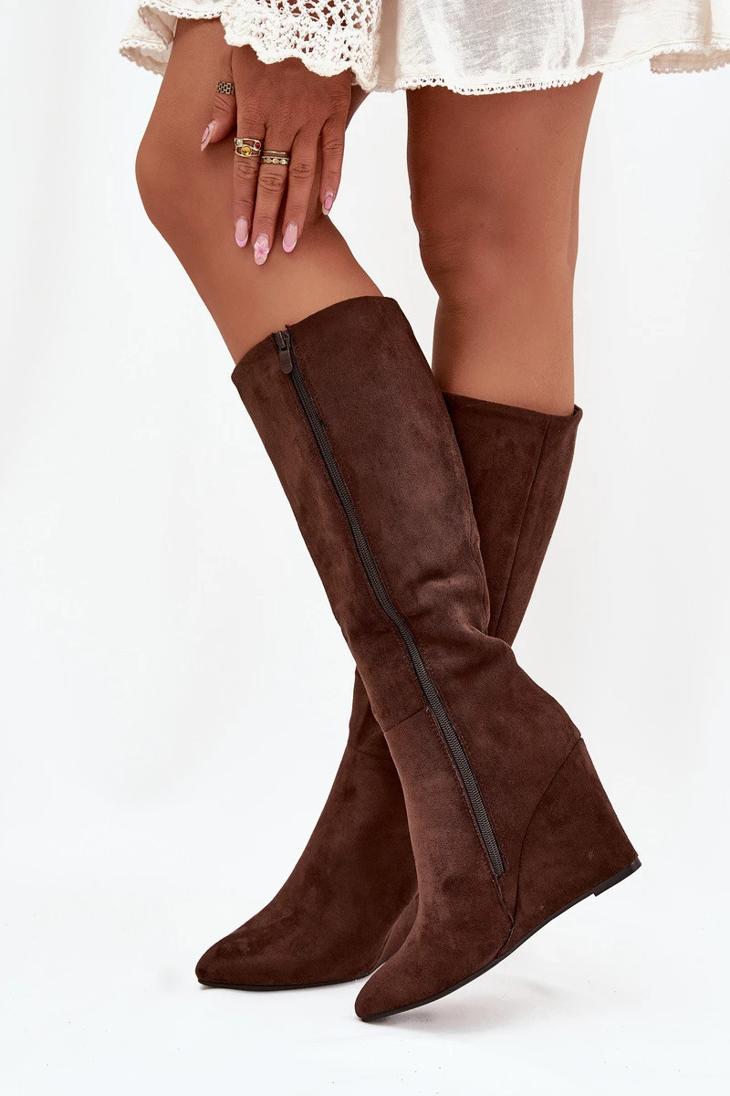 Zateplené dámské kozačky na klínu čokoládové model 21705078 - Boto