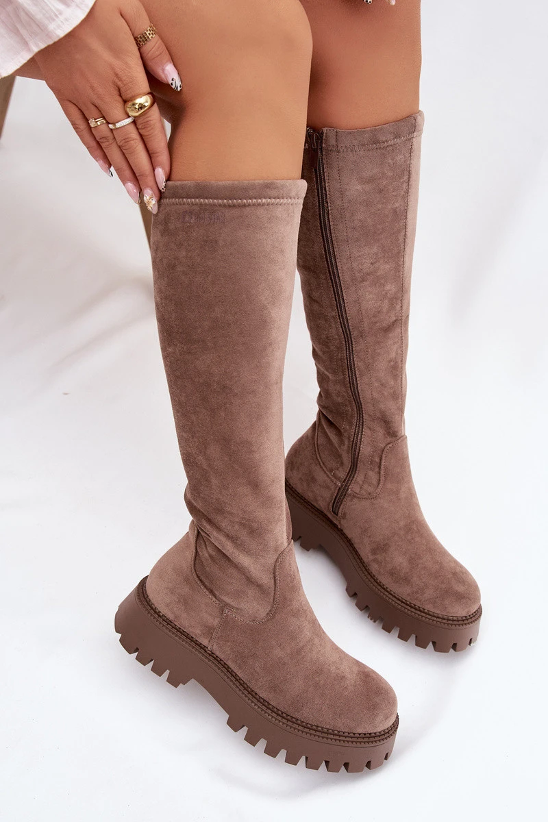 Dámské kozačky značky Big Star vyrobené z měkkého eko semiše jsou návrhem, který kombinuje pohodlí, teplo a módní vzhled. Model na zip usnadňuje obouvání a uvnitř je vyplněn příjemným kožíškem, který zajišťuje komfort i v mrazivých dnech. Postavené na stabilní platformě, dodávají postavě výšku a skvěle izolují od podlahy. Stylové, praktické a ideální na podzimně-zimní sezónu. Při výběru velikosti se řiďte tabulkou velikostí.