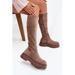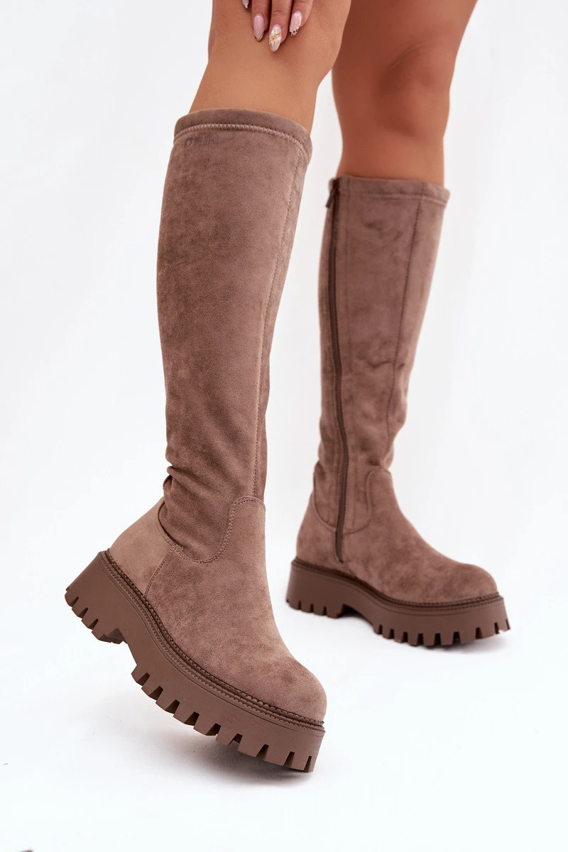 Zateplené dámské kozačky na platformě Big Star OO274722 béžové