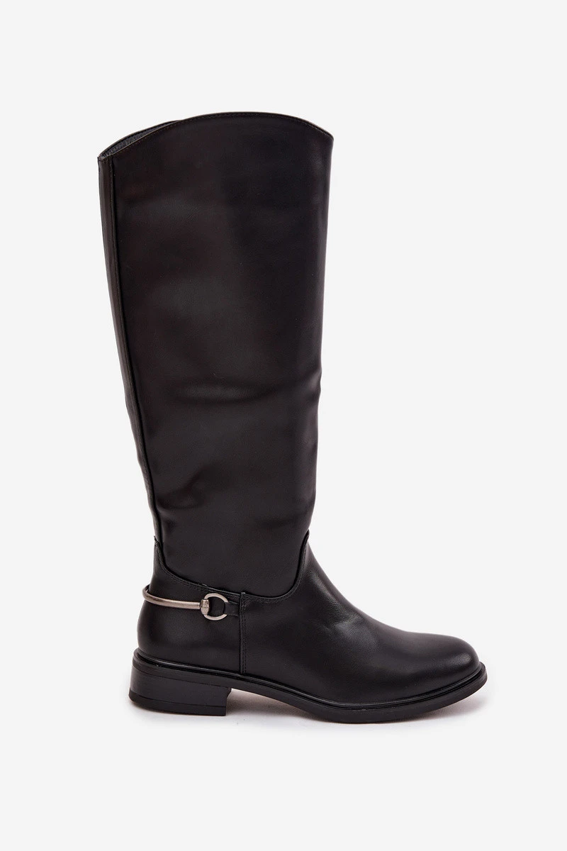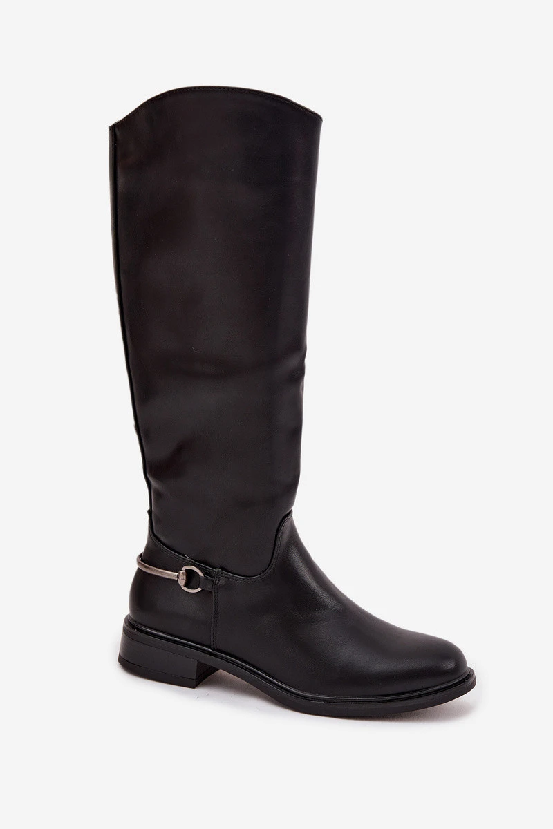 Zateplené dámské kozačky na ploché podrážce s ozdobným detailem Černé model 21714930 - Boto
