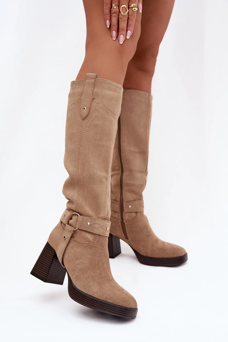 Zateplené dámské kozačky na podpatku s béžové model 21772337 - Boto
