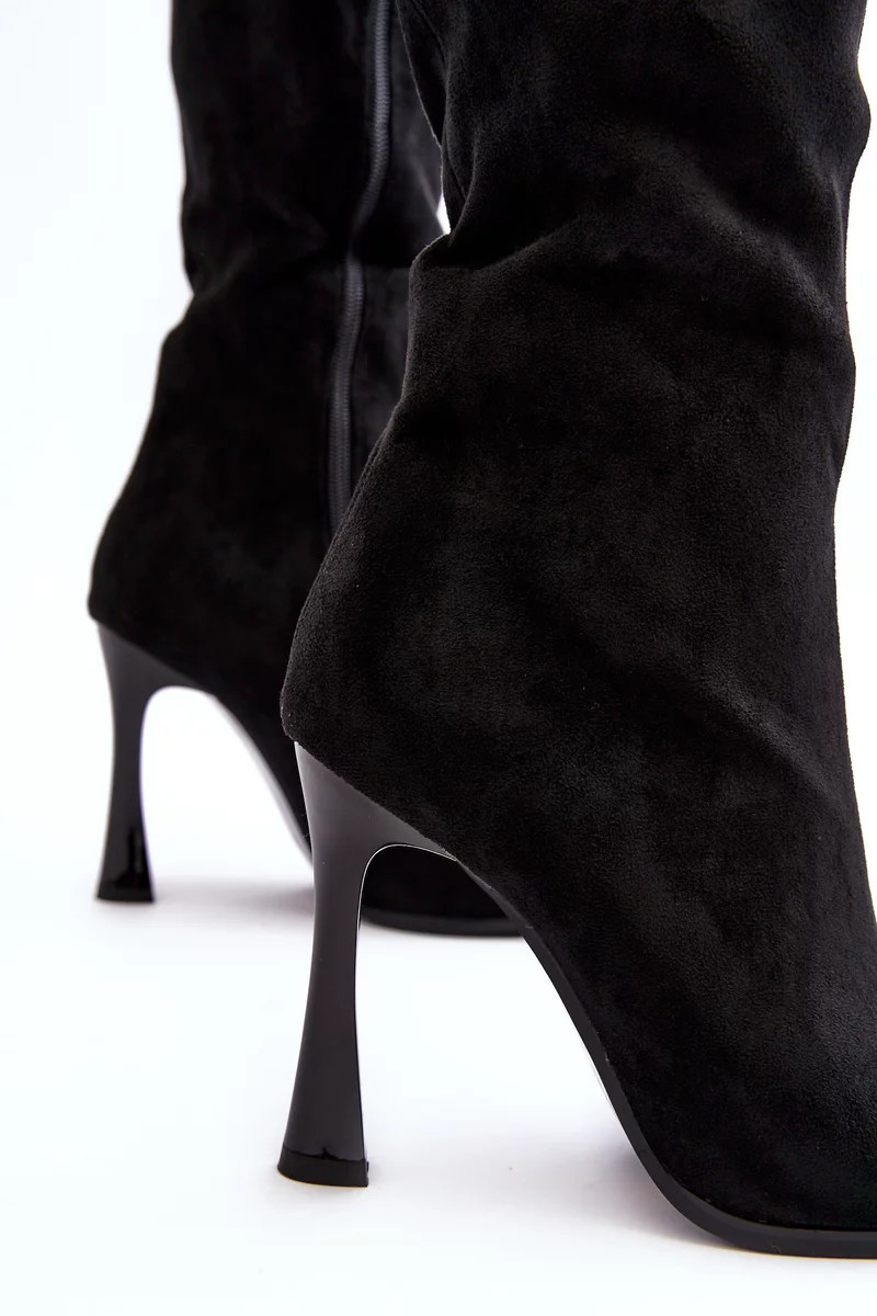 Zateplené dámské kozačky na vysokém podpatku černé Isot