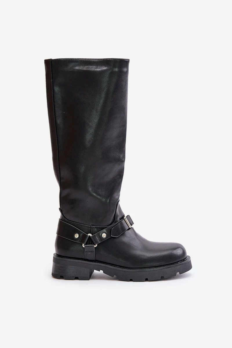 Dámské kozačky jsou vyrobeny z vysoce kvalitní eko kůže. Mají zateplení obuvnickým fleecem. Jsou usazeny na plochém podpatku. Model je na zip. Špičky jsou zaoblené. Svršek nad kolenem je ozdoben pásky s přezkami. Tento klasický styl by měl být ve vašem šatníku! Při výběru velikosti se řiďte tabulkou velikostí.