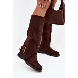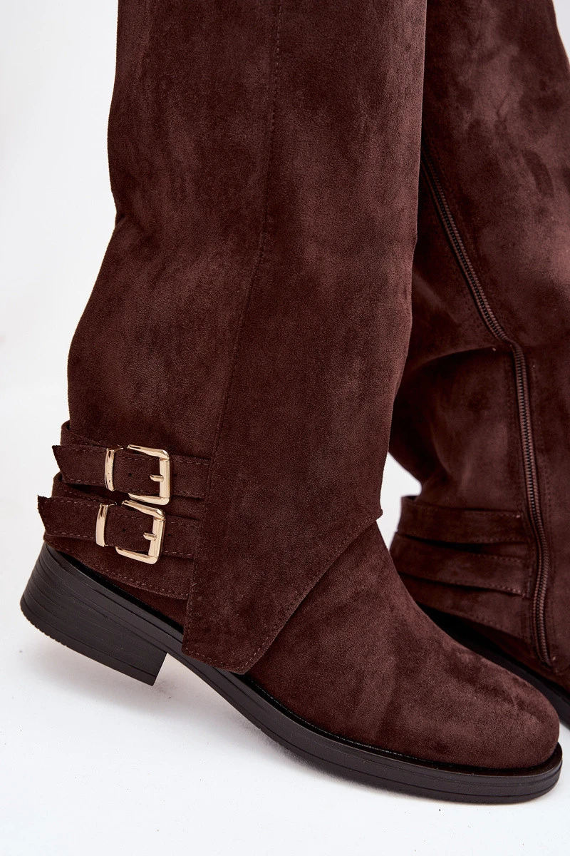 Zateplené dámské kozačky s přezkami čokoládové model 21715392 - Boto