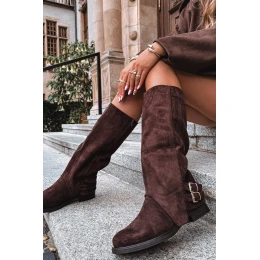 Zateplené dámské kozačky s přezkami čokoládové Umbria