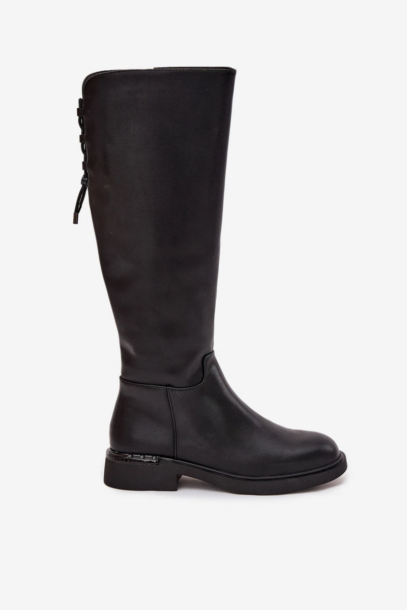 Zateplené dámské kozačky z pravé kůže na nízkém podpatku model 21713362 Černé - VINCEZA