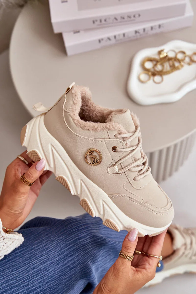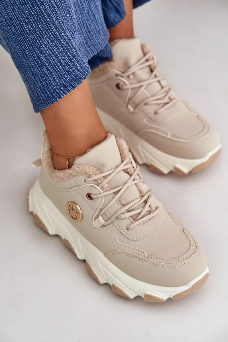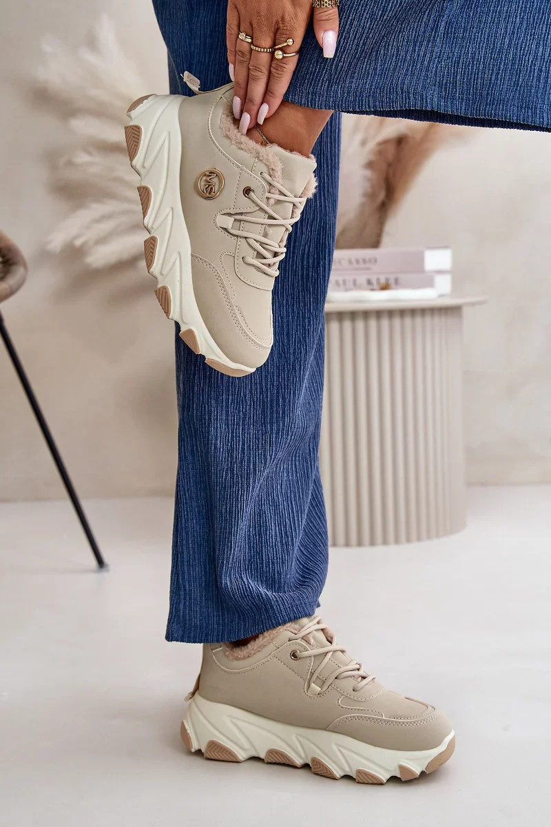 Zateplené Dámské Sportovní Boty Šněrovací Na Platformě Béžové Bialoa