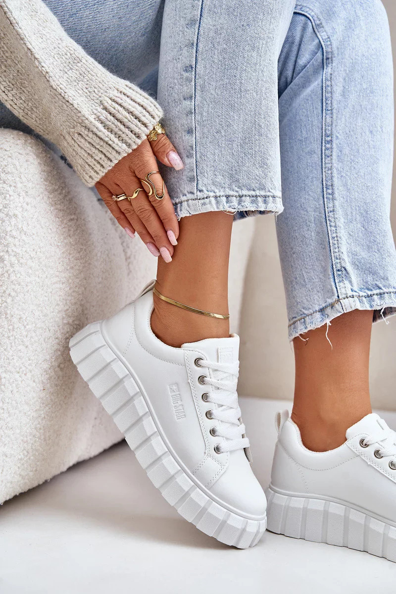 Dámské tenisky značky Big Star jsou módní a pohodlnou volbou pro chladnější dny. Zabudované na platformě, dodávají moderní styl a jemné zvýšení. Model je šněrovací, což zajišťuje ideální přizpůsobení, a zaoblené špičky jim dodávají klasický vzhled. Vnitřek byl lehce zateplen obuvnickou dekou, což zaručuje teplo a pohodlí při nošení. To je skvělá nabídka pro ženy, které si cení módního designu a pohodlí v jednom. Při výběru velikosti se prosím řiďte tabulkou velikostí.