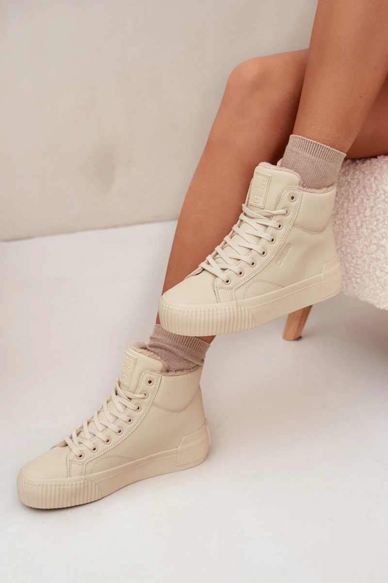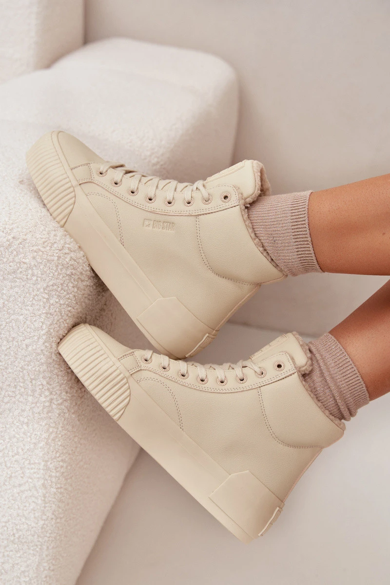 Zateplené dámské tenisky na platformě Big Star OO274795 Béžové