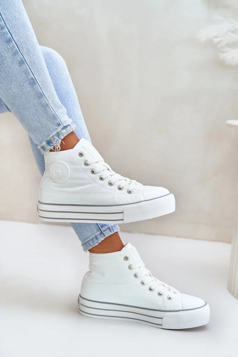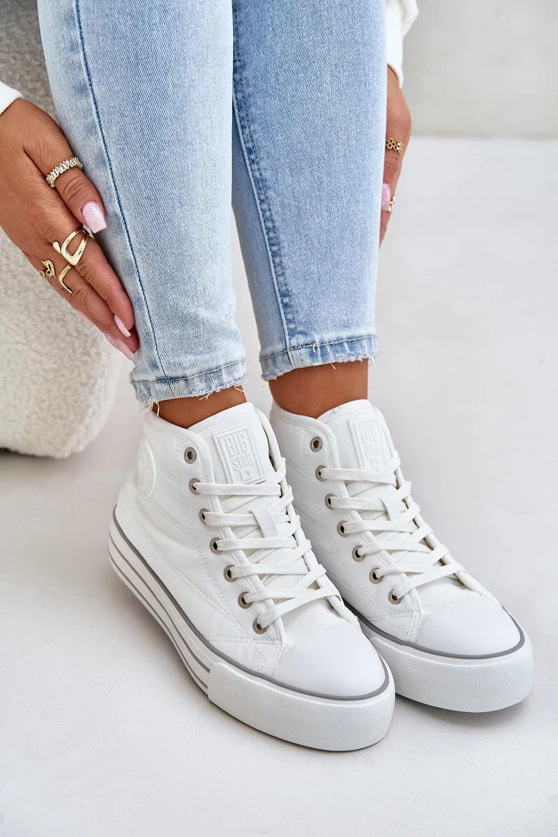 Zateplené dámské tenisky na platformě od Big Star jsou stylovou volbou na chladnější dny. Vyrobené s důrazem na detaily, zajišťují pohodlí díky pevné, zvýšené podrážce, která dodává charakter každému outfitu. Tenisky jsou šněrovací, což umožňuje ideální přizpůsobení noze. Zateplený interiér zajišťuje teplo, což z něj činí ideální volbu na podzim a zimu, spojující módní vzhled s funkčností.. Při výběru velikosti se prosím řiďte tabulkou velikostí.