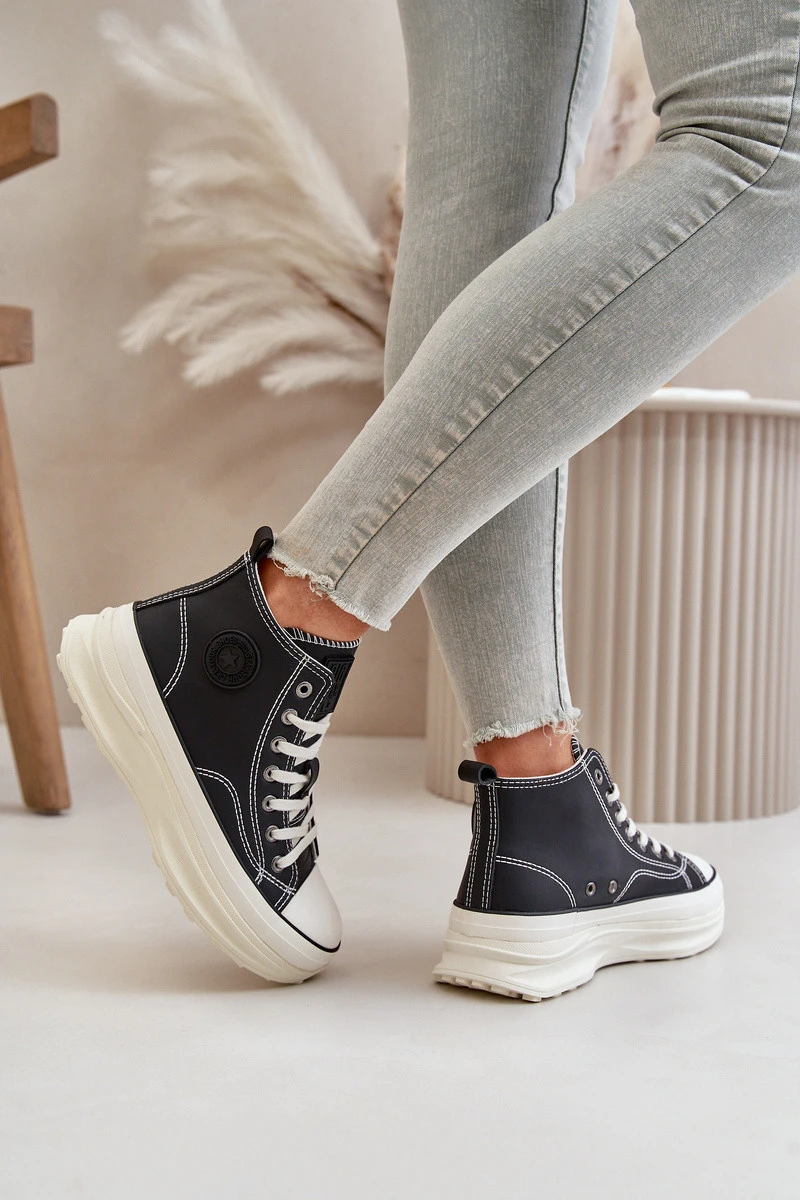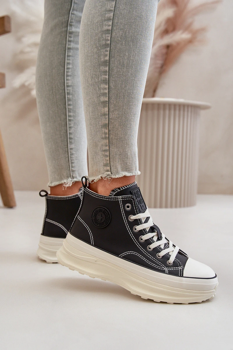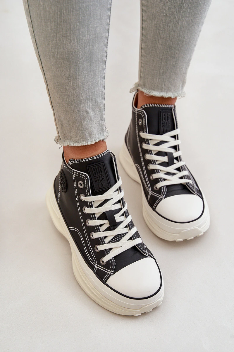 Dámské tenisky značky Big Star. Vyrobené z vysoce kvalitního PU materiálu, který připomíná přírodní kůži. Usazené na masivní platformě, která nejenže přidává několik centimetrů na výšce, ale také zajišťuje výjimečné pohodlí při nošení po celý den. Klasické šněrování a zaoblená špička dodávají nadčasový vzhled. Logo značky je po straně svršku. Při výběru velikosti se řiďte tabulkou velikostí.