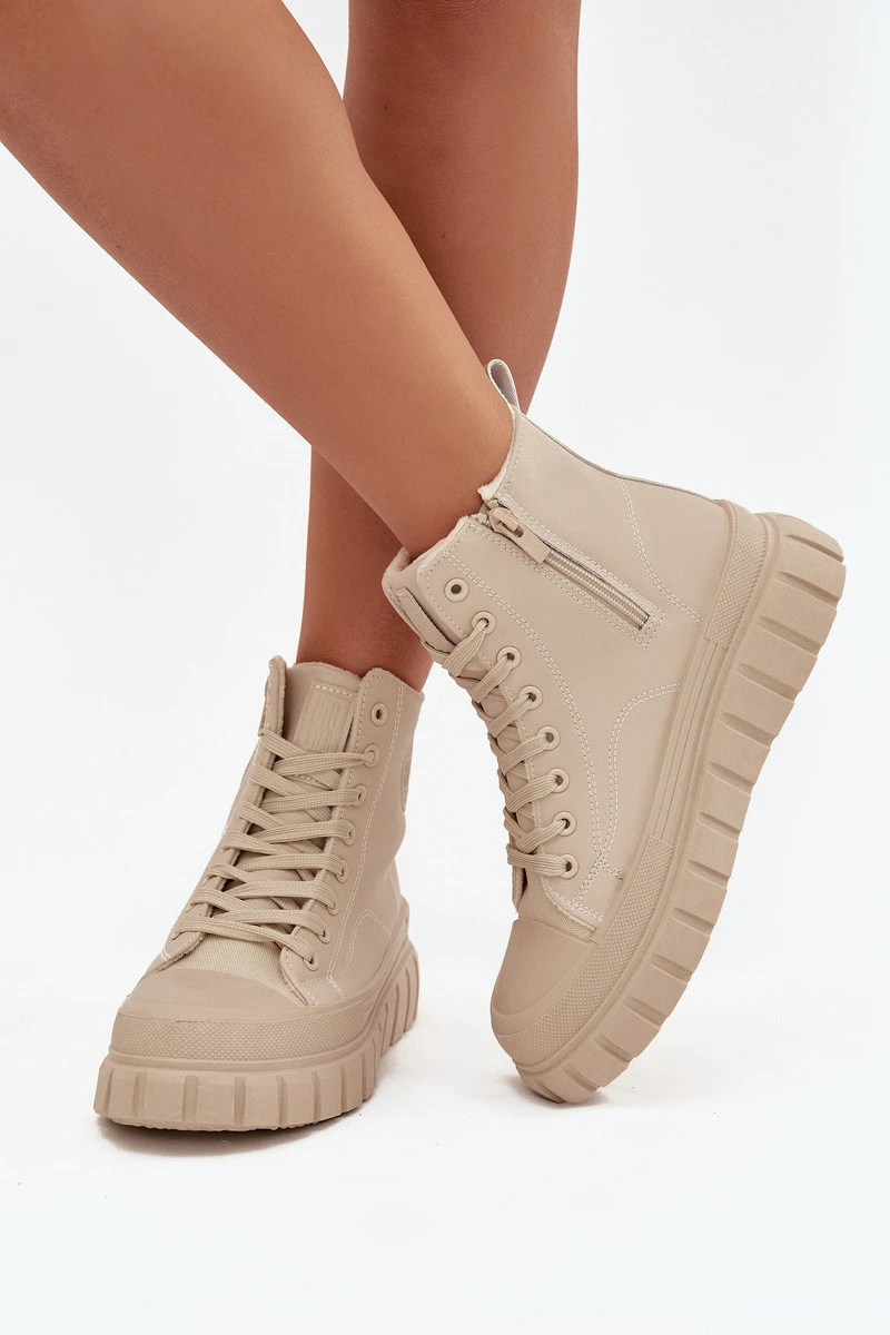 Zateplené dámské tenisky na platformě z ekokůže Big Star model 21708690 béžové - Big Star Shoes