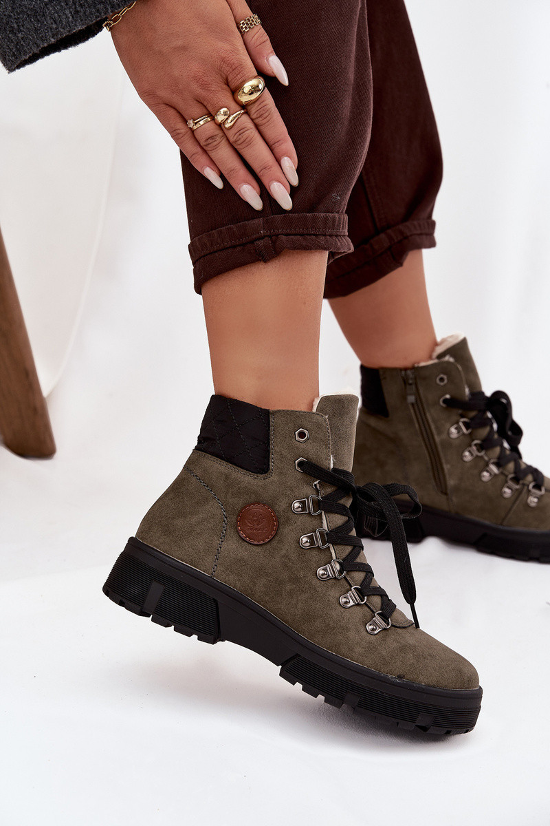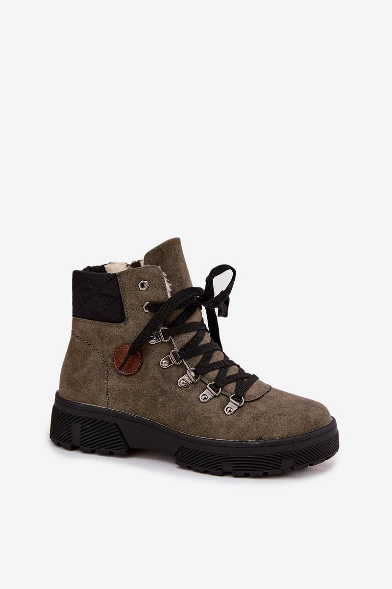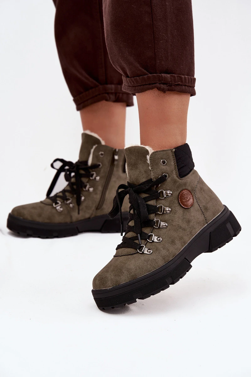 Zateplené dámské trapery na platformě tmavě zelené model 21714434 - Boto