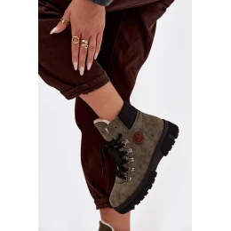 Zateplené dámské trapery na platformě tmavě zelené Zaraine