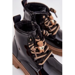 Zateplené dětské lakované kotníkové boty s přezkou černé model 21712649 - Boto