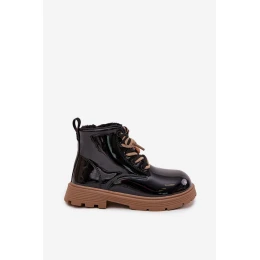 Zateplené dětské lakované kotníkové boty s přezkou medvěd černé Jovellea