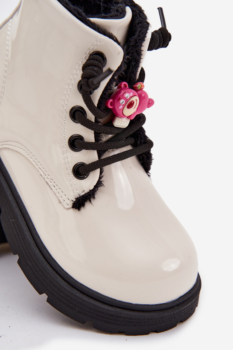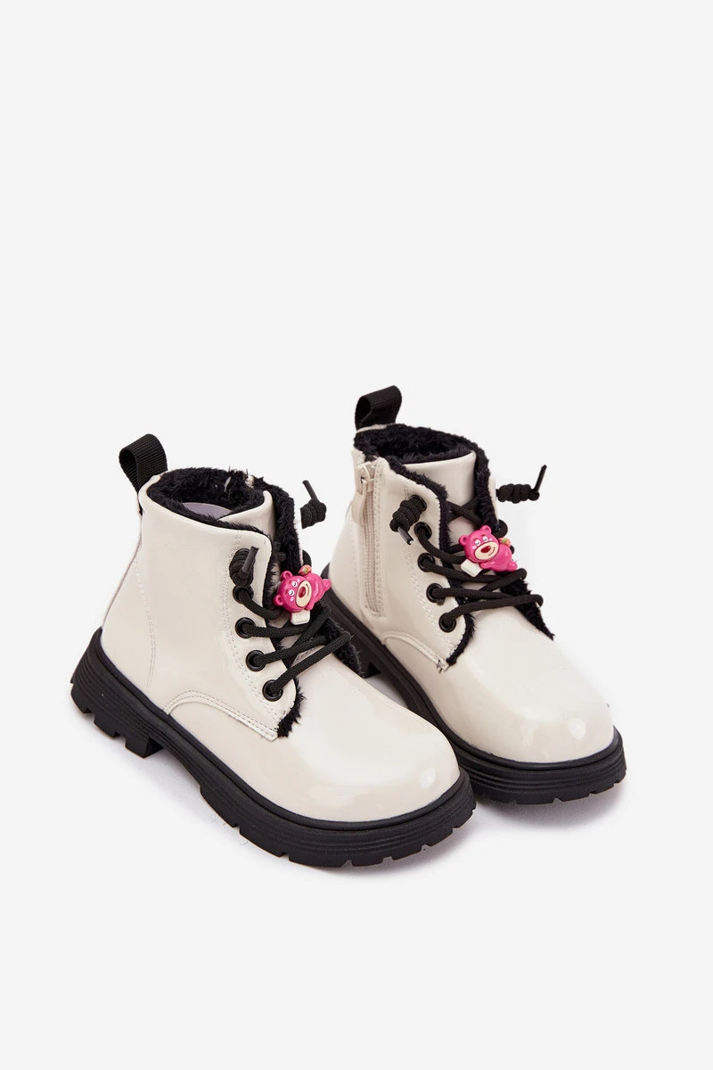Zateplené dětské lakované kotníkové boty s přezkou Medvídek Bílá model 21718351 - Boto