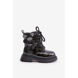 Přidání recenze k Zateplené dívčí botky s medvídkem na zip lakované černé Relobia