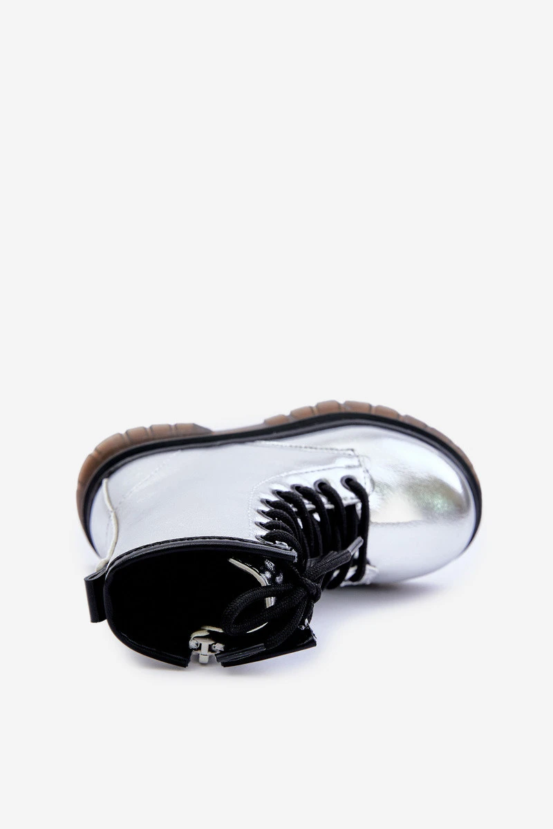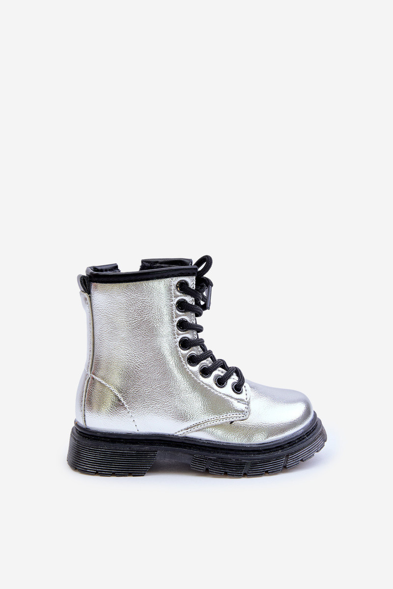 Zateplené dívčí lakované boty na zip stříbrné model 21678886 - Boto