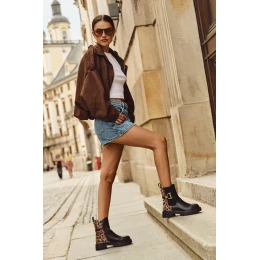 Dámské workery vyrobené z eko kůže jsou praktickou a módní volbou na chladnější dny. Umístěné na platformě s plochým podpatkem zajišťují pohodlí a stabilitu, zatímco vyhřívání obuvním zateplením zaručuje teplo při nošení. Model vyniká elegantním páskem se zlatým detailem, který dodává celkovému vzhledu stylový charakter. Ideální pro každodenní, volnočasové stylizace. Při výběru velikosti se řiďte tabulkou velikostí. Při výběru velikosti se řiďte tabulkou velikostí.