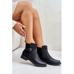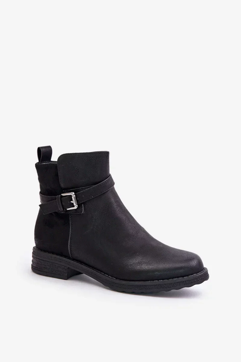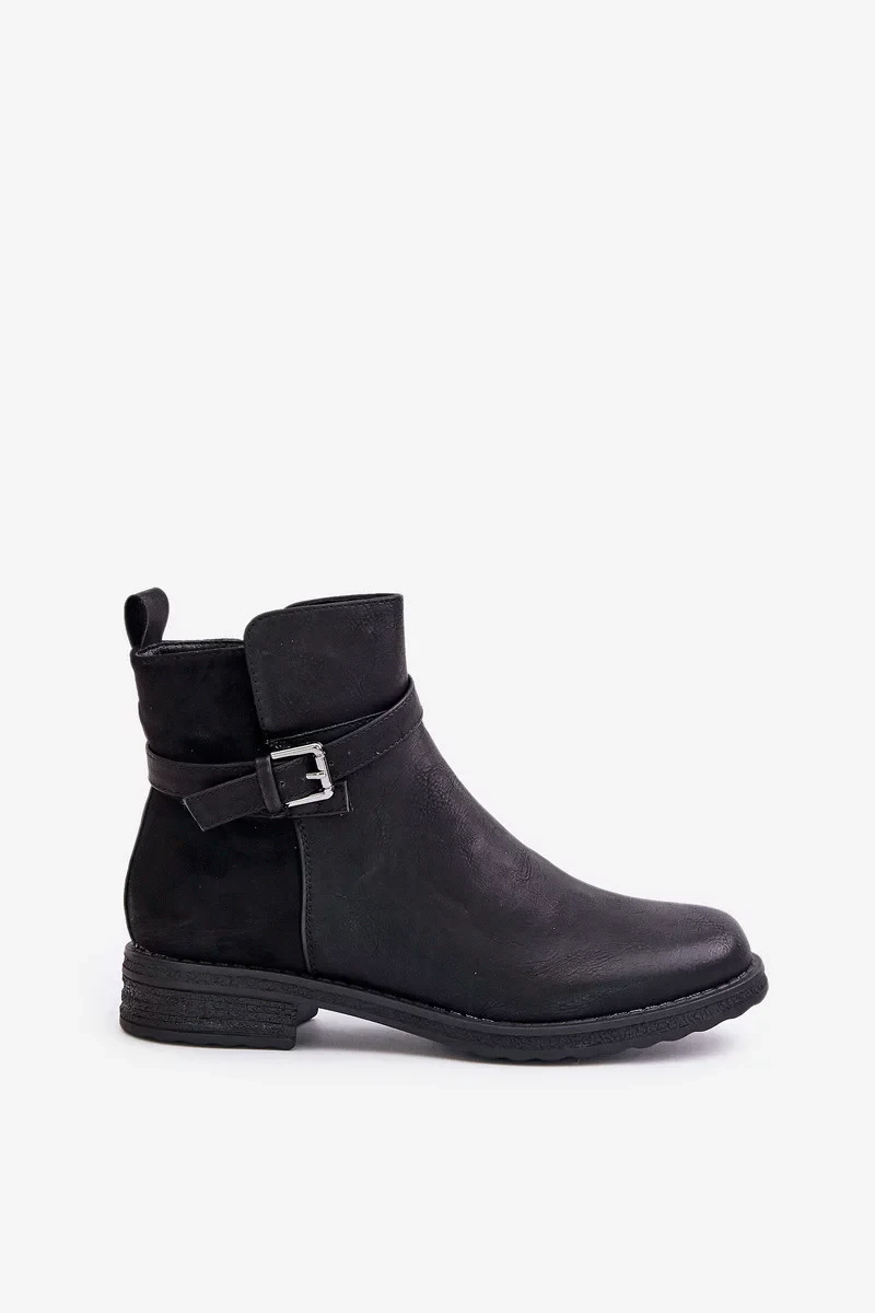 Zateplené Kotníkové Boty Na Plochém Podpatku S Páskem Černé Sabamessa