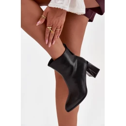 Zateplené kotníkové boty na podpatku z pravé kůže Vinceza 66812 Černé