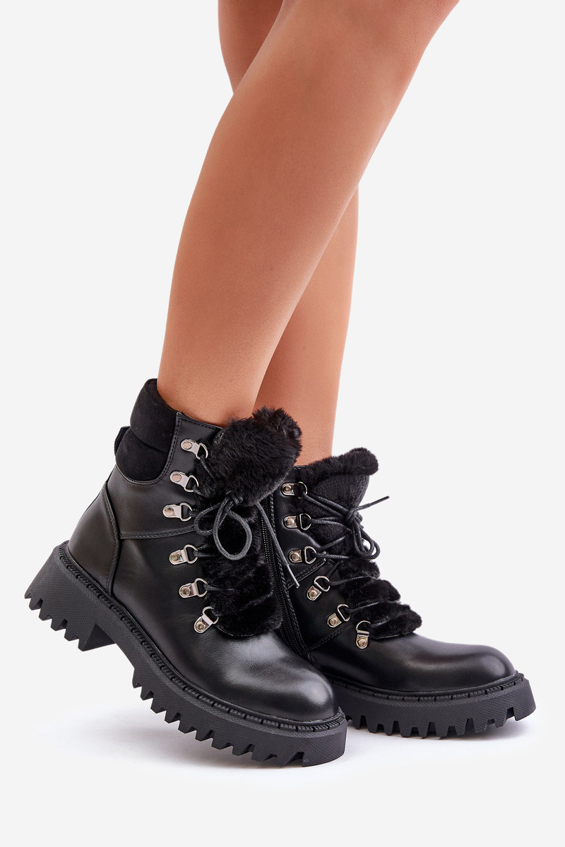Dámské kotníkové boty vyrobené z eko kůže jsou vynikající volbou na chladnější dny. Model je šněrovací a zapínací na zip, což usnadňuje rychlé obouvání a zajišťuje dokonalé přizpůsobení. Jazyk boty je ozdoben měkkým kožíškem, který dodává šarm a chrání před chladem. Zateplený interiér zaručuje teplo a pohodlí při nošení, díky čemuž jsou kotníkové boty skvělé jak na každodenní nošení, tak i v náročnějších povětrnostních podmínkách. Při výběru velikosti se řiďte tabulkou velikostí.