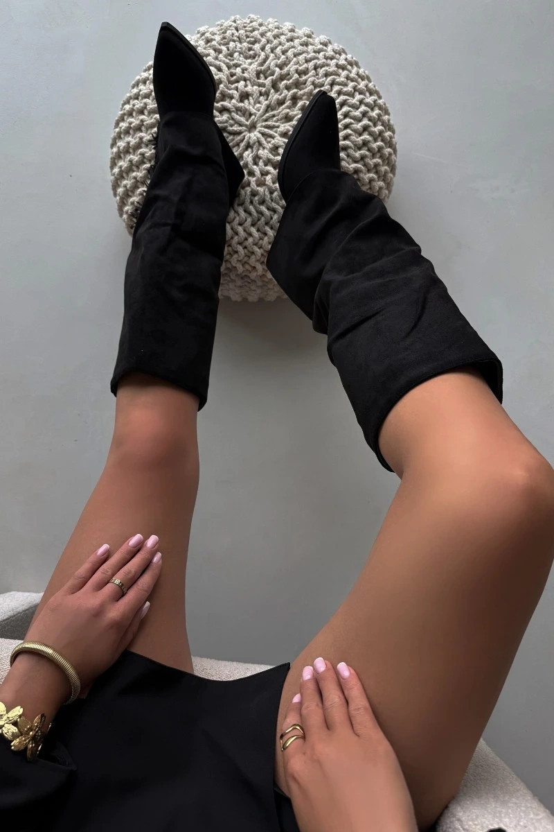 Nazouvací cowboyské boty z eko semiše na sloupkovém podpatku jsou kombinací pohodlí a stylu. Špičaté špičky dodávají eleganci a svršek zdobený třásněmi přináší lehký boho akcent. Ideální pro každodenní stylizace, skvěle se hodí k šatům, sukním a kalhotám, dodávající každému outfitu kousek kovbojského kouzla. Při výběru velikosti se řiďte tabulkou velikostí.