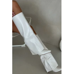 Přidání recenze k Zateplené kozačky na jehlovém podpatku s ohrnutým svrškem bílé Tamonia