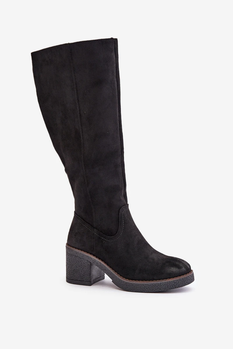 Zateplené kozačky na podpatku eko semišové nad koleno černé model 21675737 - Boto