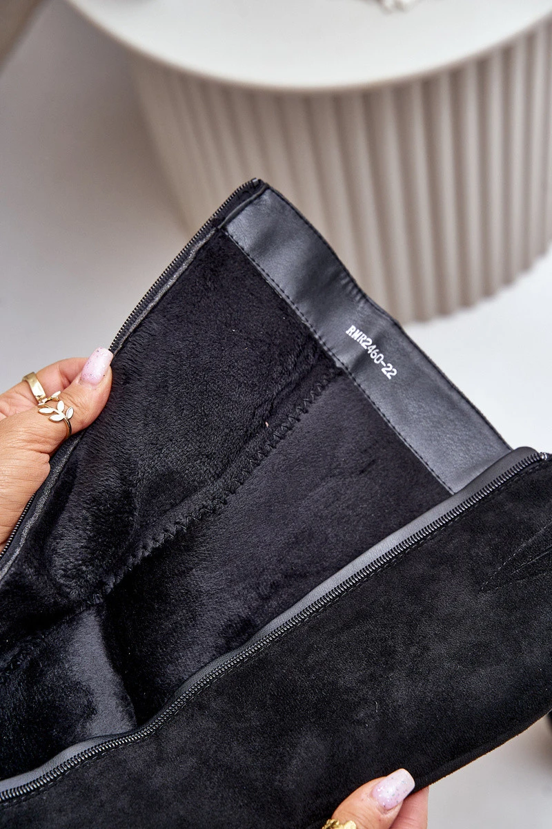 Přidání recenze k Zateplené kozačky na podpatku eko semišové nad koleno černé model 21675737 - Boto