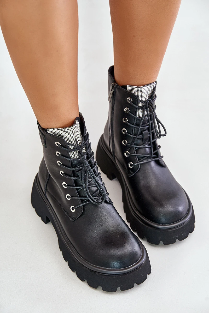 Zateplené Kožené Botky Pracovníky Pro Ženy S Krystaly GOE OO2N4125 Černé