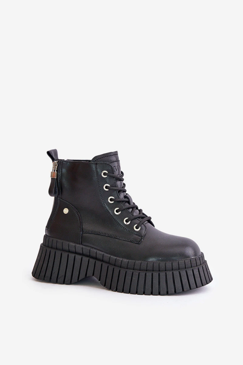 Zateplené kožené botky s masivní podrážkou GOE OO2N4126 černé