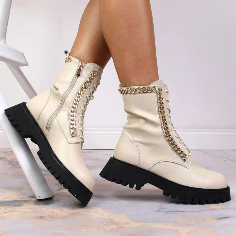 Zateplené kožené boty s řetězem Artiker W HBH40