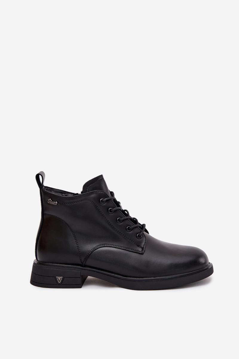 Zateplené kožené dámské boty na nízkém podpatku Vinceza 39953 Černé
