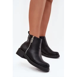 Dámské boty z eko kůže jsou elegantní a pohodlnou volbou na chladnější dny. Zapínají se na zip. Zateplený vnitřek zajišťuje teplo, zatímco zaoblené špičky a jemný podpatek jim dodávají ženský charakter, což zaručuje pohodlí a styl na každý den. Na podrážce zdobení zirkony. Stříbrný zip je dekorativní, nezipuje se. Ideální pro každodenní stylizace. Při výběru velikosti prosím zohledněte tabulku velikostí. Při výběru velikosti se řiďte tabulkou velikostí.
