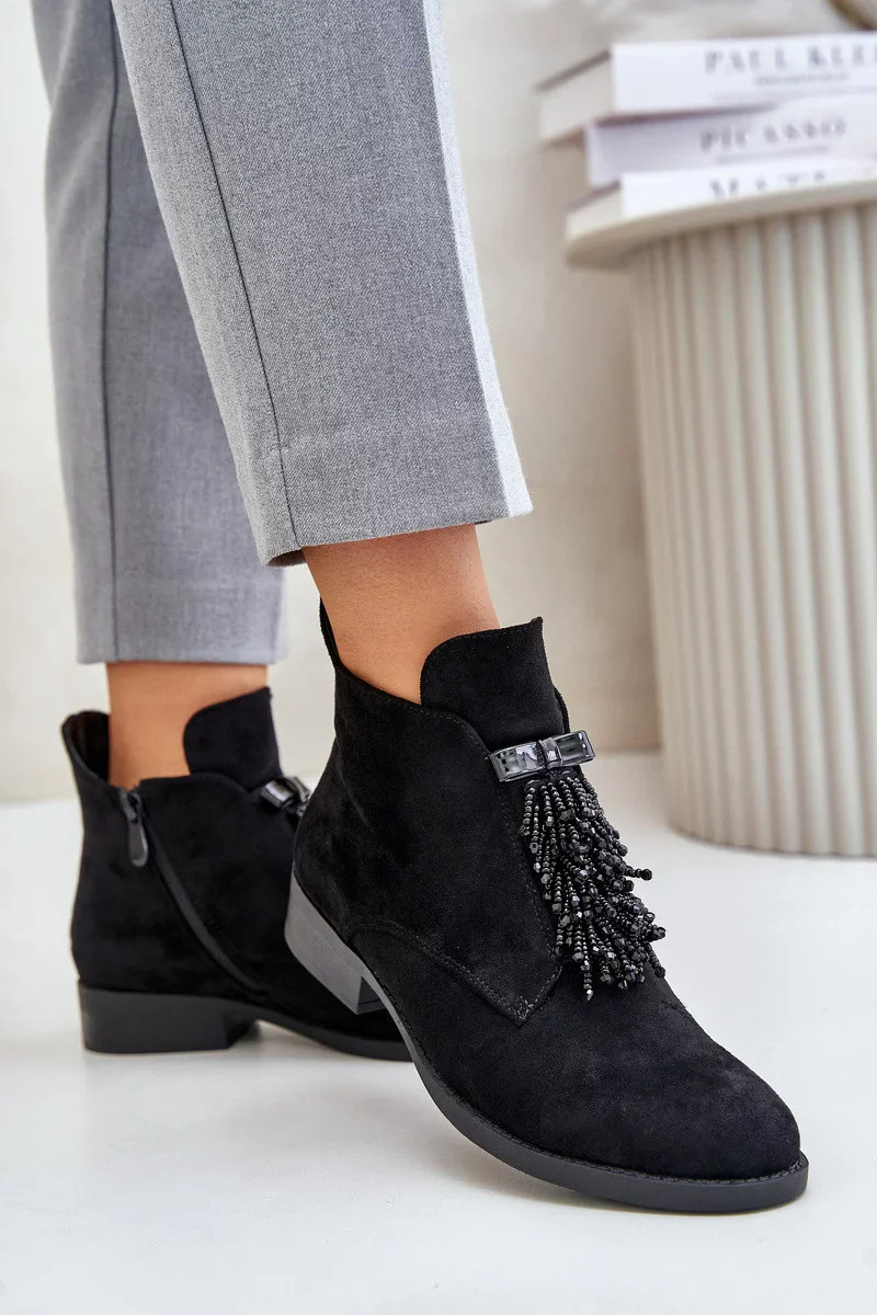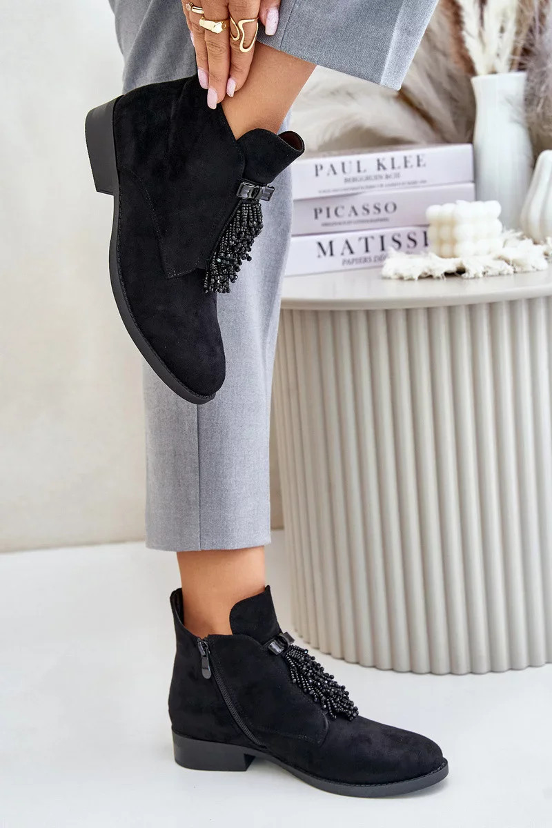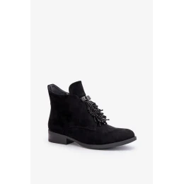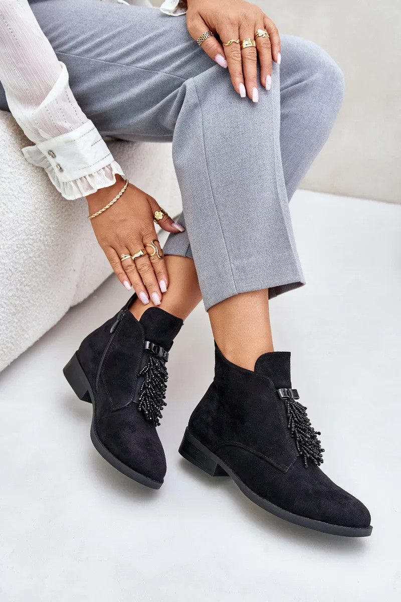 Zateplené Nízké Kotníkové Boty s Ozdobou na Zip S.Barski Černé