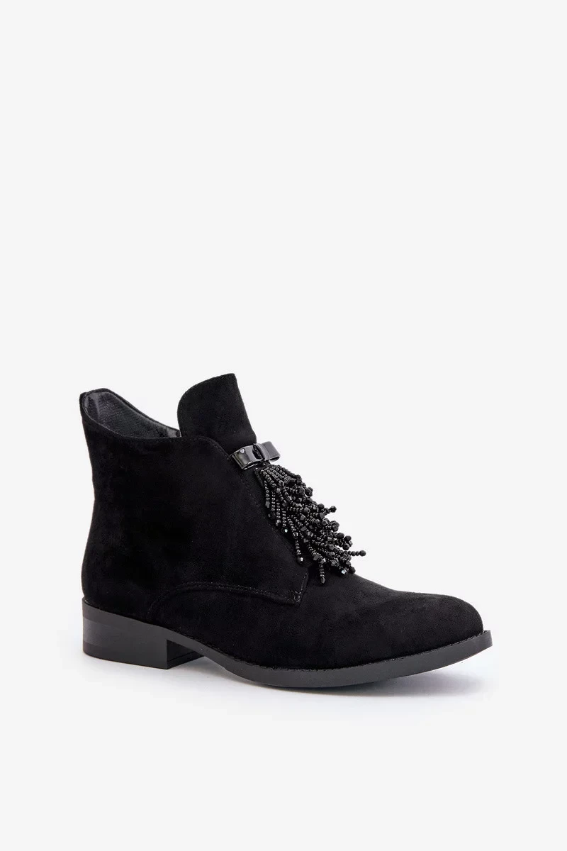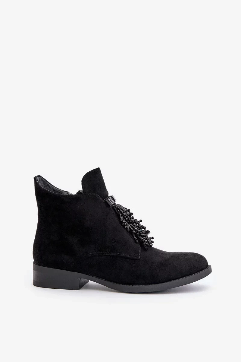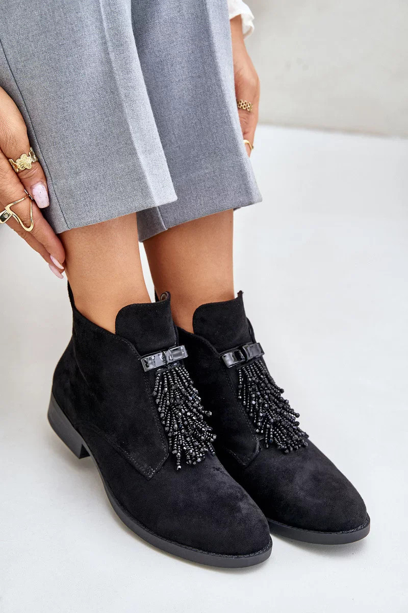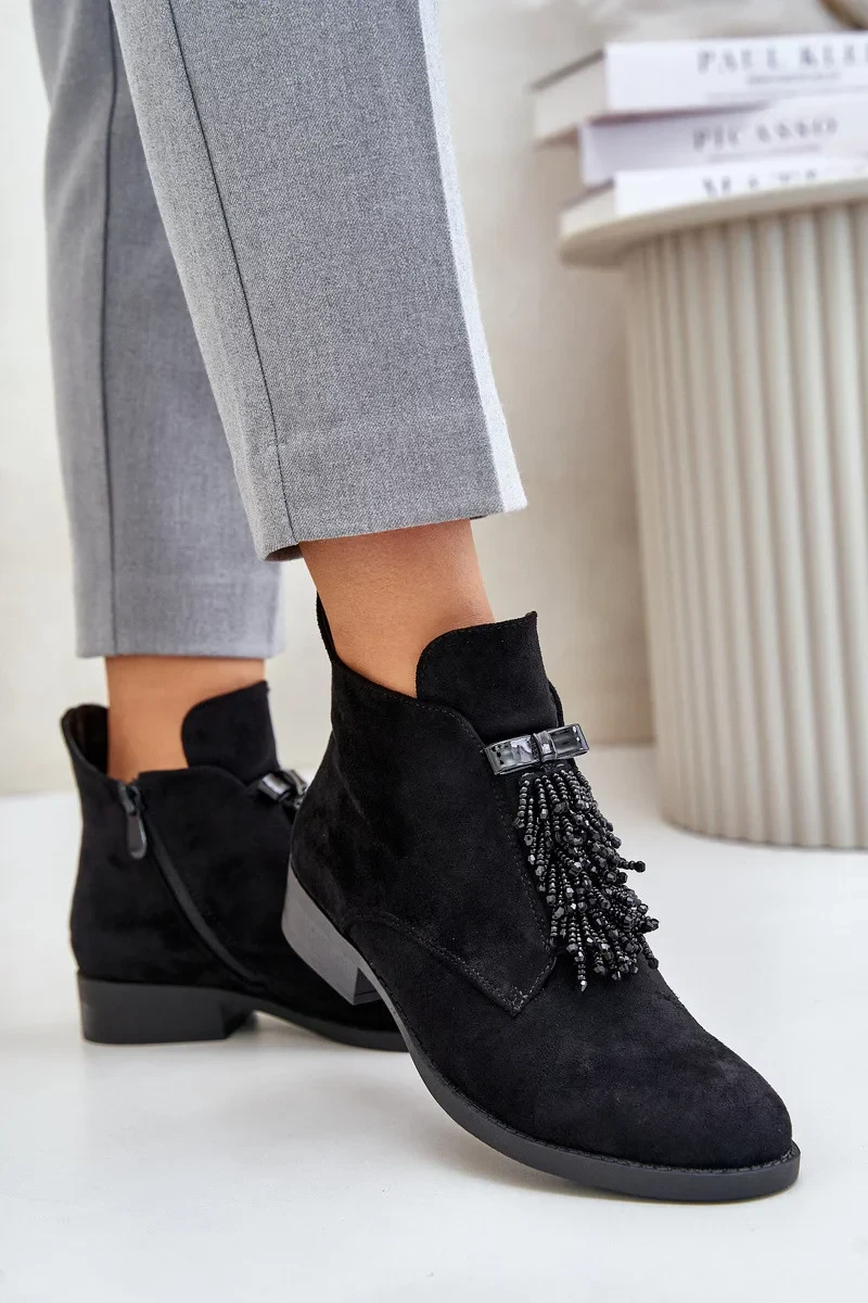 Zateplené Nízké Kotníkové Boty s Ozdobou na Zip S.Barski Černé