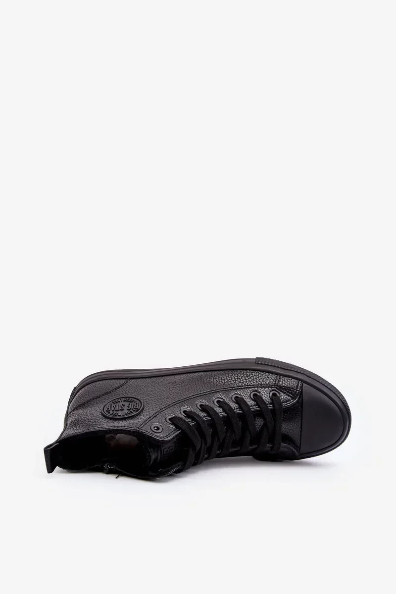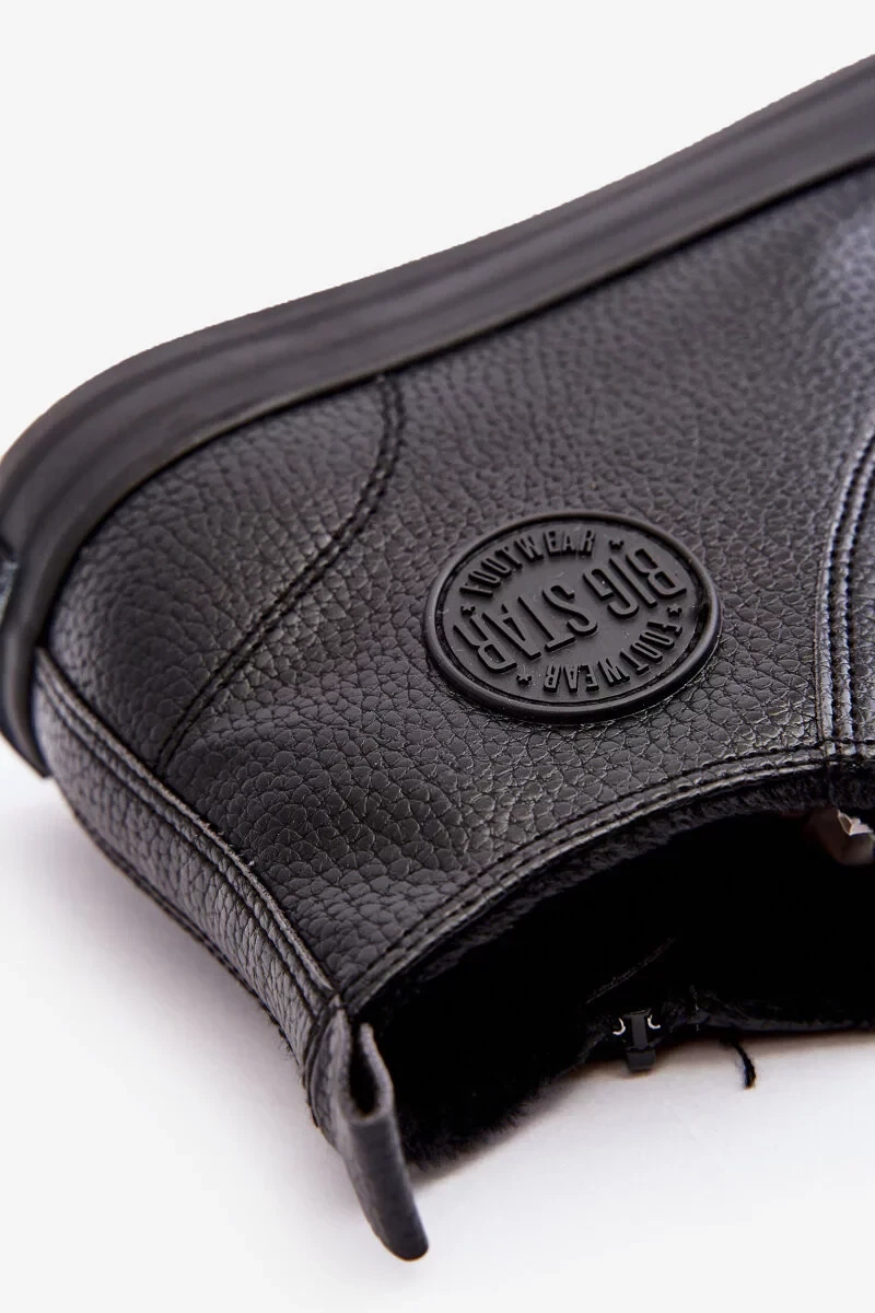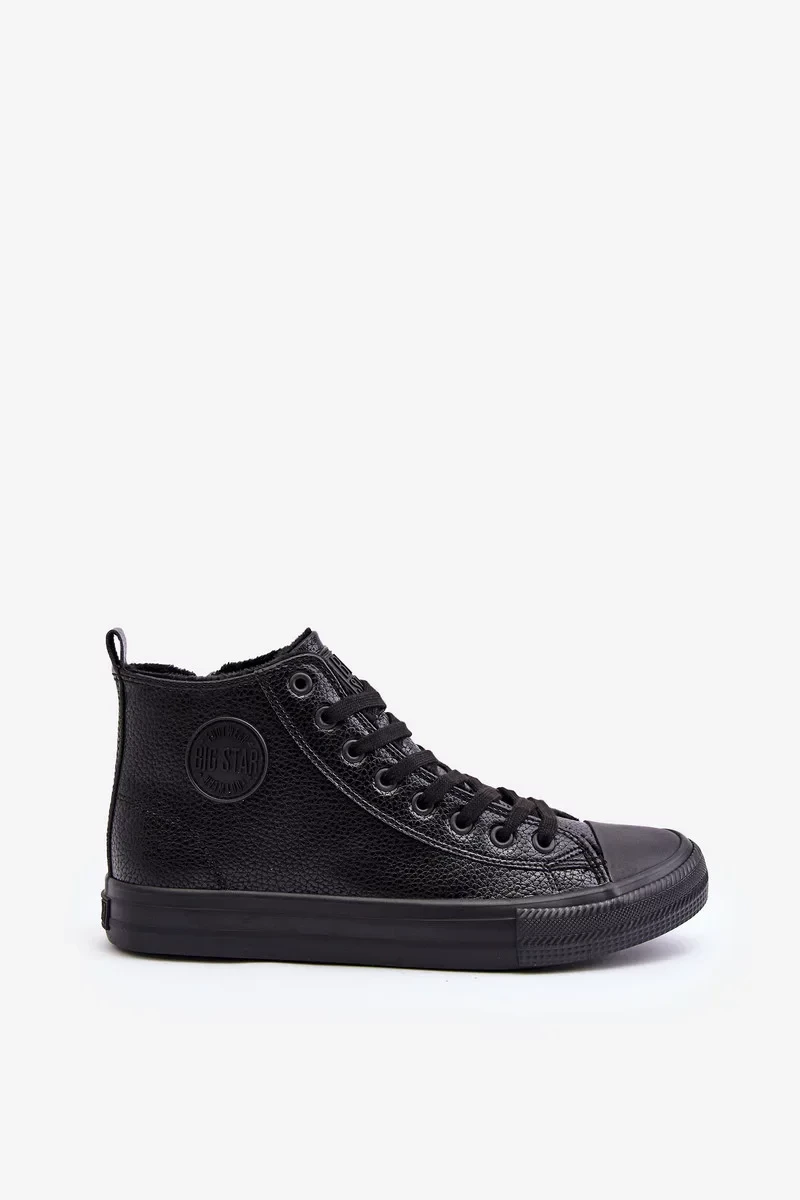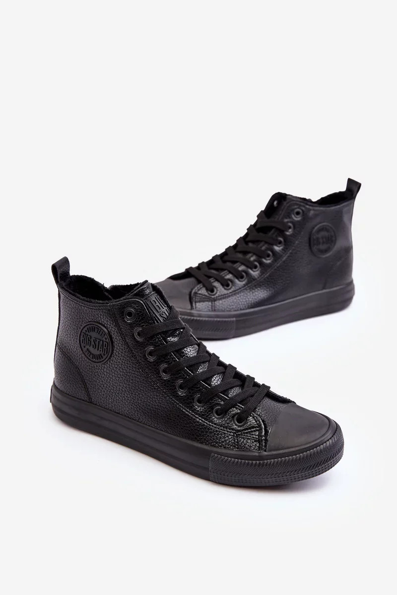 Klasické pánské tenisky značky Big Star s kotníkovým svrškem. Vyrobeno z eko kůže. Namontováno na platformě vyrobené z pryžového materiálu. Tento model se zapíná na zip na boku. Šněrování vpředu. Logo značky na svršku. Vnitřek je zateplen dekou na boty. Vyztužená pata.Při výběru velikosti se řiďte tabulkou velikostí.