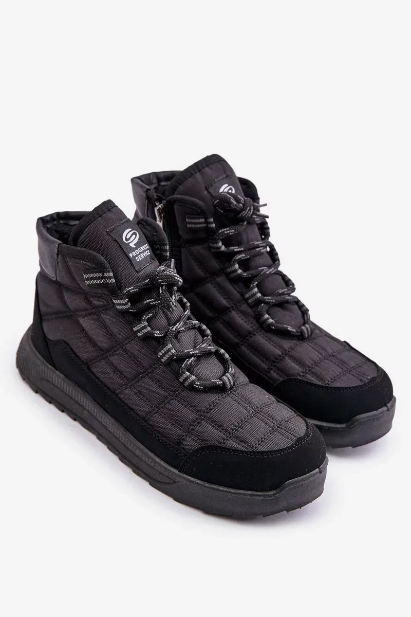 Zateplené Pánské Zimní Boty Šněrovací Progress Černé