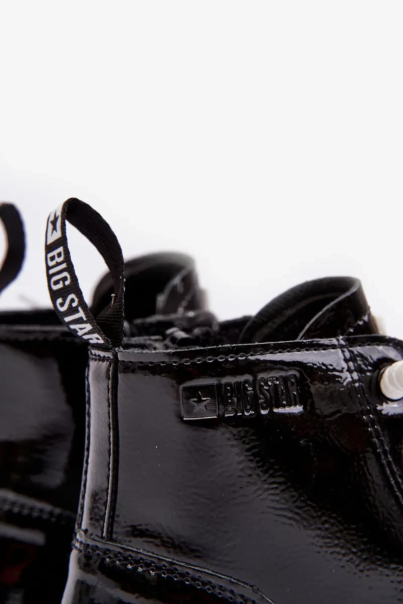 Nádherné dětské holínky od značky BIG STAR. Vyrobeno z eko kůže. Vnitřek je zateplen dekou na boty. Zapínání na zip na boku a navíc opatřené šněrováním. Na svršku je logo značky Big Star.Při výběru velikosti se řiďte tabulkou velikostí.