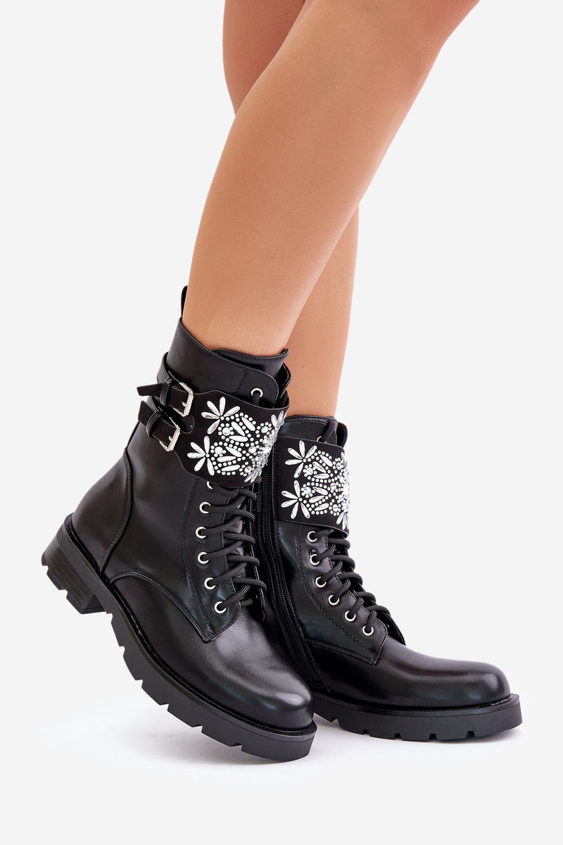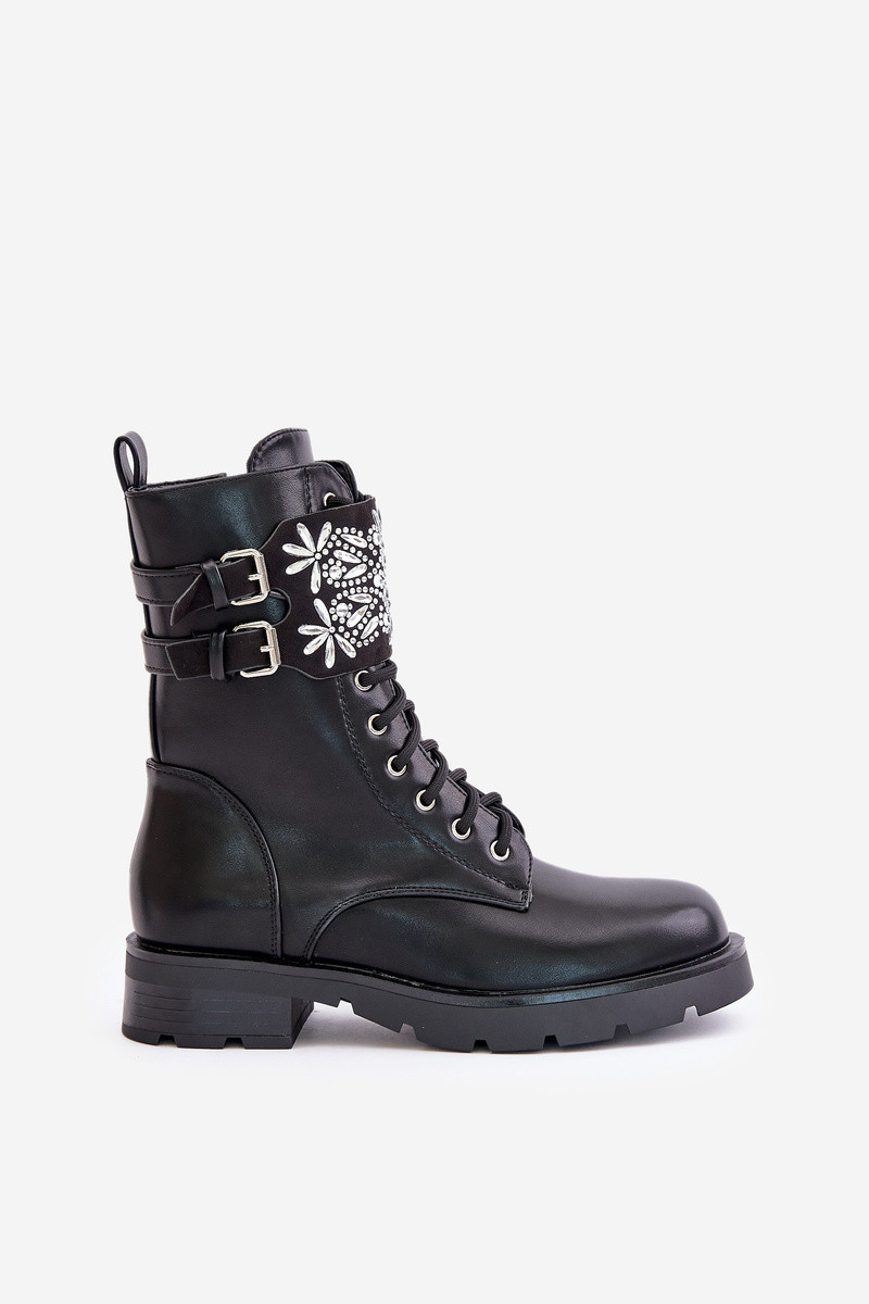 Zateplené pracovní boty s ozdobným pásem a přezkami černé model 21675949 - Boto