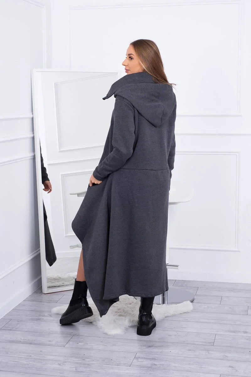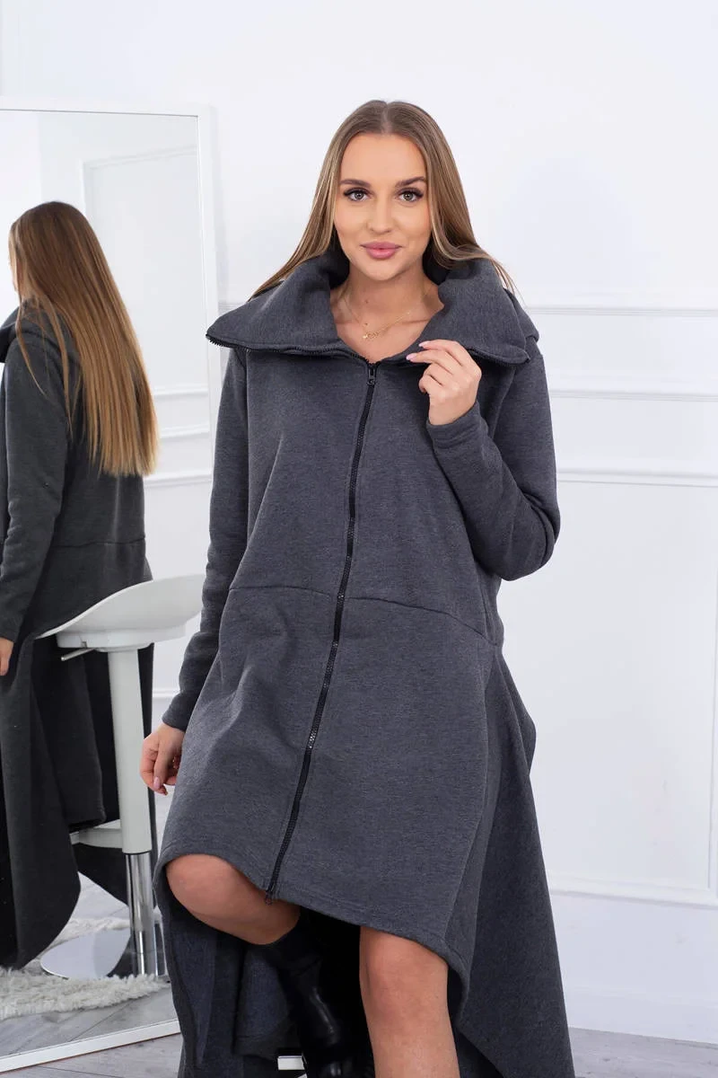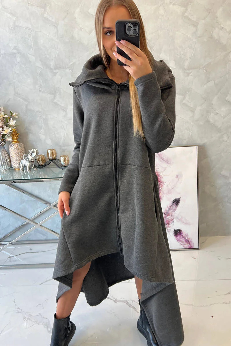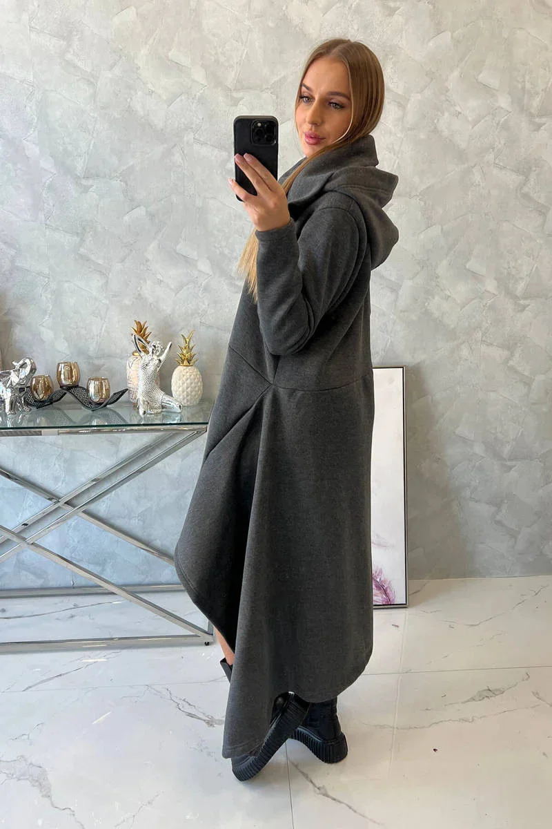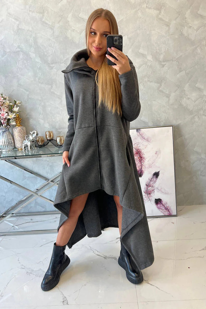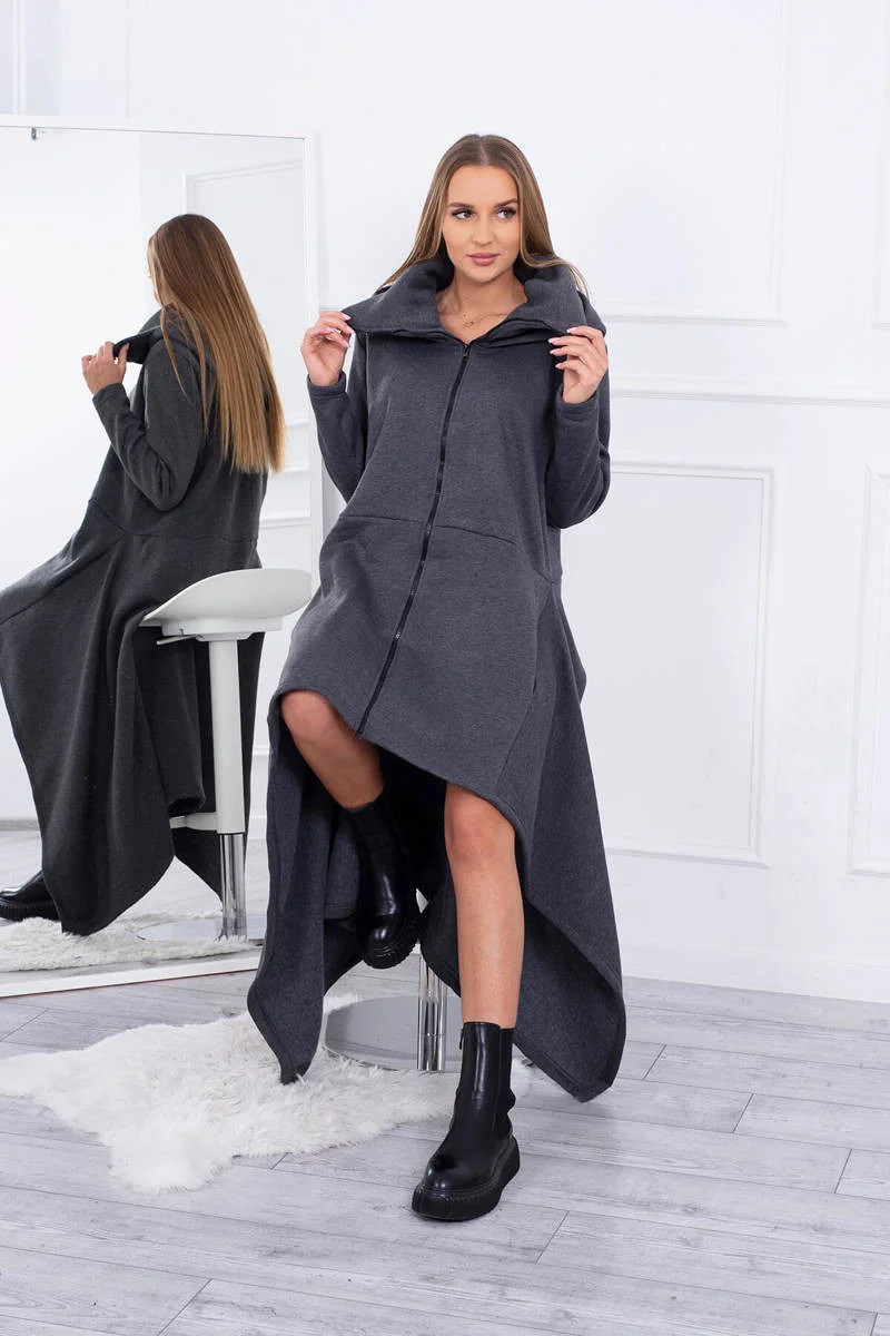 Představujeme vám módní šaty. Šaty mají kapuci, zapínání na zip a delší boky. Ideální každodenní poloha. Šaty jsou vyrobeny z vysoce kvalitní zateplené tkaniny. Velikost je univerzální a vyhovuje dámám, které nosí velikost S, M nebo L.