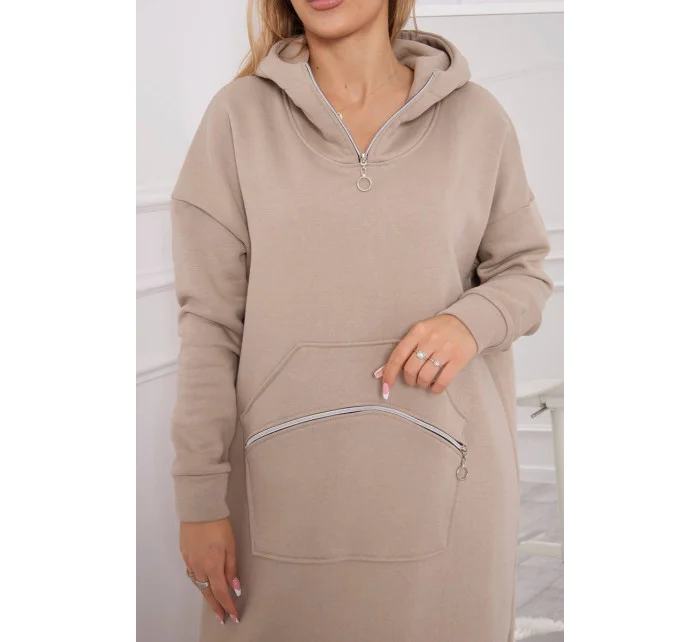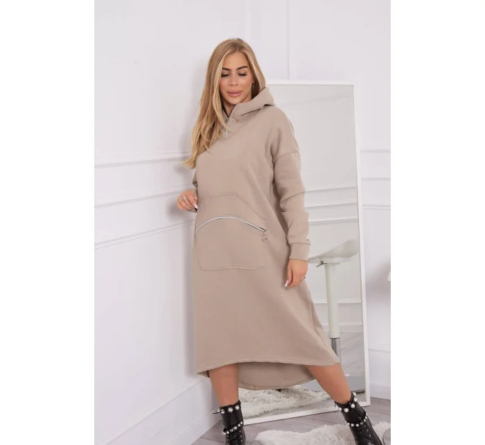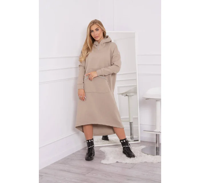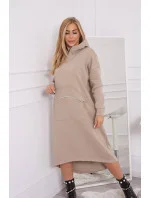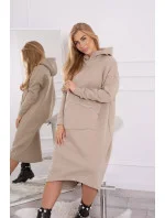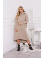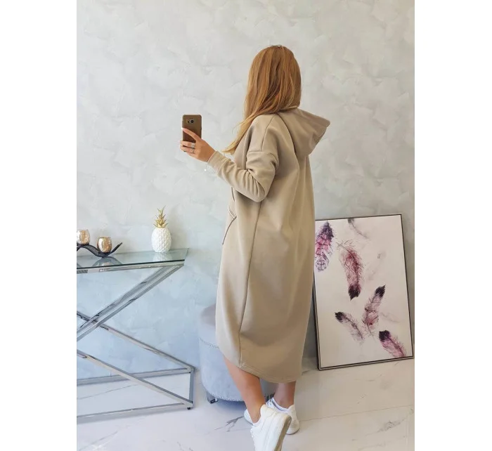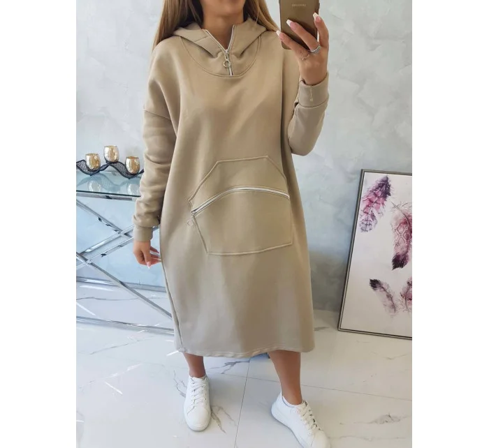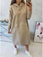 Zateplené šaty s kapucí béžové