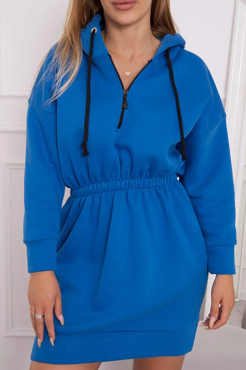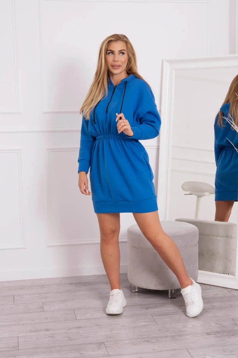 Zateplené šaty s kapucí chrpově modré