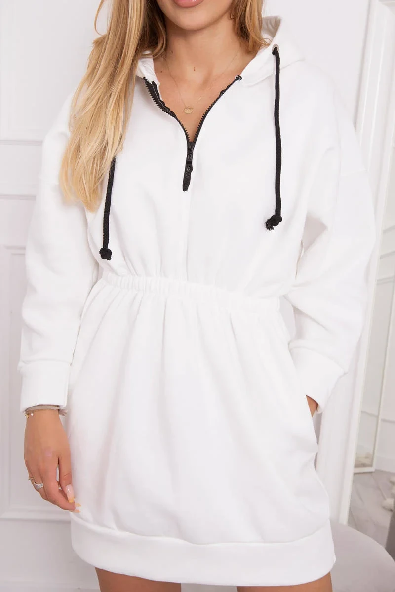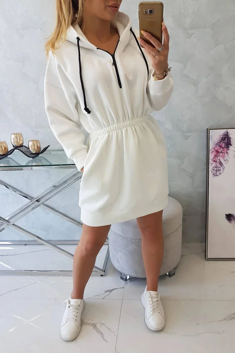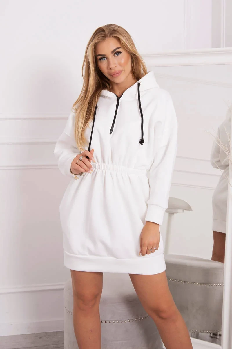 Zateplené šaty s kapucí ecru