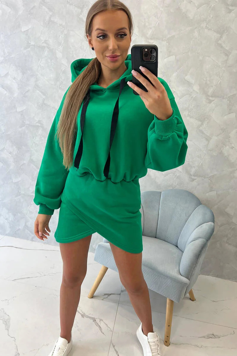 Představujeme vám módní šaty. Šaty mají kapuci. Šaty s obálkovým spodním dílem. Šaty jsou vyrobeny z vysoce kvalitní zateplené tkaniny. Velikost je univerzální a vyhovuje dámám, které nosí velikost S, M nebo L.